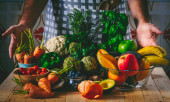 kobiecych rąk ma warzywa, gotowy do być przygotowany i gotowane na zdrowy obiad, przydatne dla utraty wagi w sposób naturalny i piękny styl życia z jedzeniem. Dobry sposób, aby żyć jak wegetariańska