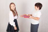 Zdjęcie "chłopiec dziewczyna daje prezent" może być wykorzystywane do celów osobistych i komercyjnych zgodnie z warunkami zakupionej licencji Royalty-free. Obraz jest dostępny do pobrania w jakości wysokiej rozdzielczości do 5760x3840.