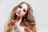 Zbliżenie portret seksowna młoda kobieta z piękną fryzurę
