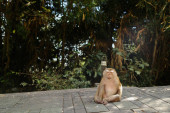 Zdjęcie "Ładne małpy siedzi w parku, drzew w tle." może być wykorzystywane do celów osobistych i komercyjnych zgodnie z warunkami zakupionej licencji Royalty-free. Obraz jest dostępny do pobrania w jakości wysokiej rozdzielczości do 5760x3840.
