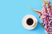 Zdjęcie "Martwa natura z filiżanką kawy i Wilcza kwiaty pączek na lekki drewniany stół miejsce" może być wykorzystywane do celów osobistych i komercyjnych zgodnie z warunkami zakupionej licencji Royalty-free. Obraz jest dostępny do pobrania w jakości wysokiej rozdzielczości do 5760x3840.