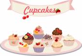 Babeczki linię narysowaną na białym tle. Kolorowe ciastka z kremem. Szkic wektor