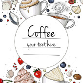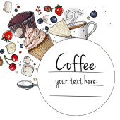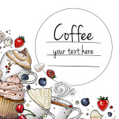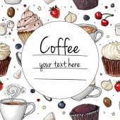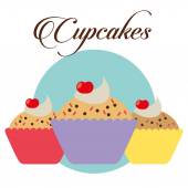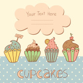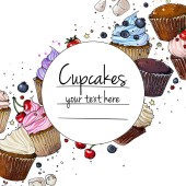 Babeczki linię narysowaną na białym tle. Kolorowe ciastka z kremem. Szkic wektor