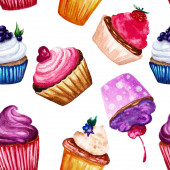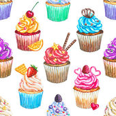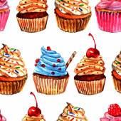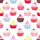 Wzór babeczki linię narysowaną na białym tle. Kolorowe ciastka z kremem. Szkic wektor
