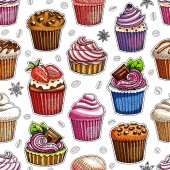 Zdjęcie "Wzór babeczki linię narysowaną na białym tle. Kolorowe ciastka z kremem. Szkic wektor" może być wykorzystywane do celów osobistych i komercyjnych zgodnie z warunkami zakupionej licencji Royalty-free. Obraz jest dostępny do pobrania w jakości wysokiej rozdzielczości do 5760x3840.