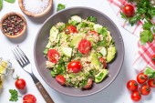 Widok z góry Sałatka quinoa z szpinak, awokado i pomidory.