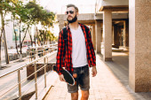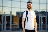 Zdjęcie "Portret piękne stylowe faceta, hipster w okularach, który wygląda na zegar, ubrany w szary t-shirt pusty, stojąc na tle czarna ściana." może być wykorzystywane do celów osobistych i komercyjnych zgodnie z warunkami zakupionej licencji Royalty-free. Obraz jest dostępny do pobrania w jakości wysokiej rozdzielczości do 5760x3840.