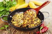 Udka pieczone z ryżem i warzywami na stole