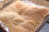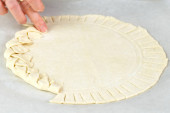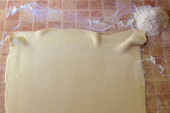 Przygotowanie tortu tradycyjne z ciasta drożdżowego przed wysyłką do pieca