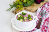 Zdjęcie "Chłodnik z jaj, świeże zioła, ogórek i zioła" może być wykorzystywane do celów osobistych i komercyjnych zgodnie z warunkami zakupionej licencji Royalty-free. Obraz jest dostępny do pobrania w jakości wysokiej rozdzielczości do 5760x3840.