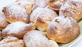 Domowy chleb roll z mlekiem na drewnianym stole