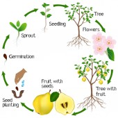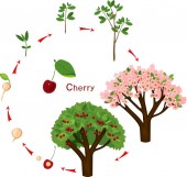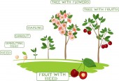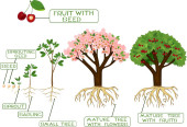 Cykl życia wiśniowe drzewo z napisami. Roślin z nasion do drzewa wiśni