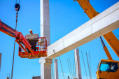 Zdjęcie "Pracownik jest pomoc dźwig do zarządzania betonowych belek dla ogromne budowy zespołu." może być wykorzystywane do celów osobistych i komercyjnych zgodnie z warunkami zakupionej licencji Royalty-free. Obraz jest dostępny do pobrania w jakości wysokiej rozdzielczości do 5760x3840.