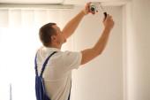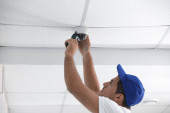 technik instalowanie kamery cctv na suficie w pomieszczeniach