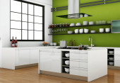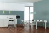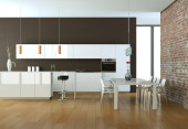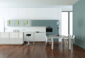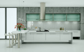 Zdjęcie "Jasne, nowoczesna kuchnia w pokoju z mur" może być wykorzystywane do celów osobistych i komercyjnych zgodnie z warunkami zakupionej licencji Royalty-free. Obraz jest dostępny do pobrania w jakości wysokiej rozdzielczości do 5760x3840.