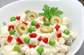 Zdjęcie "Sałatka ziemniaczana z sosem jajko w majonezie." może być wykorzystywane do celów osobistych i komercyjnych zgodnie z warunkami zakupionej licencji Royalty-free. Obraz jest dostępny do pobrania w jakości wysokiej rozdzielczości do 5760x3840.