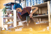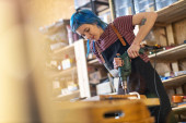 Zdjęcie "Czarnoziem Afro american kobieta pracuje w jej warsztat" może być wykorzystywane do celów osobistych i komercyjnych zgodnie z warunkami zakupionej licencji Royalty-free. Obraz jest dostępny do pobrania w jakości wysokiej rozdzielczości do 5760x3840.