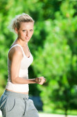 Zdjęcie "kobieta robi hantle ćwiczenia odkryty" może być wykorzystywane do celów osobistych i komercyjnych zgodnie z warunkami zakupionej licencji Royalty-free. Obraz jest dostępny do pobrania w jakości wysokiej rozdzielczości do 5760x3840.