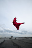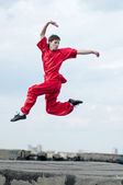 wushoo mężczyzna w czerwonej praktyki sztuki walki