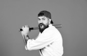 Zdjęcie ". Baseballista z szoku twarz posiada zielony kij baseballowy. Mistrz dostaje gotowy do walki. Koncepcja sztuki walki. Baseballista z szoku twarz" może być wykorzystywane do celów osobistych i komercyjnych zgodnie z warunkami zakupionej licencji Royalty-free. Obraz jest dostępny do pobrania w jakości wysokiej rozdzielczości do 5760x3840.