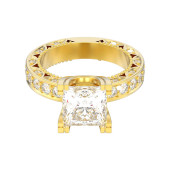 3D ilustracja na białym tle żółty ozdobny pierścionek złoty z różnych diament okrągłe i kwadratowe z cienia na białym tle