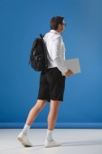 Zdjęcie "podekscytowany mężczyzna skoki i triumfuje na niebiesko " może być wykorzystywane do celów osobistych i komercyjnych zgodnie z warunkami zakupionej licencji Royalty-free. Obraz jest dostępny do pobrania w jakości wysokiej rozdzielczości do 5760x3840.