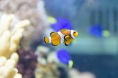 Zdjęcie z goldfish zebrasoma flavescens w zoo na dnie akwarium