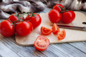 Zdjęcie "Deska z świeżych dojrzałych pomidorów na stole" może być wykorzystywane do celów osobistych i komercyjnych zgodnie z warunkami zakupionej licencji Royalty-free. Obraz jest dostępny do pobrania w jakości wysokiej rozdzielczości do 5760x3840.