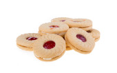 Tradycyjne Boże Narodzenie Linzer ciasteczka z słodkie jam na białym tle