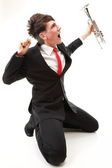 młody biznesmen czarny komplet krawat dorywczo na białym tle