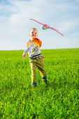 szczęśliwy mały chłopiec w zielonym parku