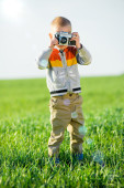 szczęśliwy mały chłopiec w zielonym parku