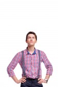 Pełna długość studio portret przystojny młody człowiek taniec