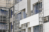 Fasada budynku w budowie. Konstrukcji betonowej. Architektura. Poziome