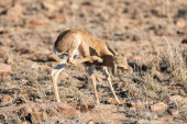 Antylopa Oryks południowy baby, w południowej afrykańskiej sawanny