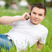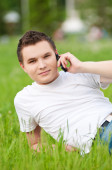Zdjęcie "młody człowiek z telefonu w zielonym parku" może być wykorzystywane do celów osobistych i komercyjnych zgodnie z warunkami zakupionej licencji Royalty-free. Obraz jest dostępny do pobrania w jakości wysokiej rozdzielczości do 5760x3840.