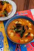 Zdjęcie "Zupa z mulami i krewetkami podawane z lampką wina" może być wykorzystywane do celów osobistych i komercyjnych zgodnie z warunkami zakupionej licencji Royalty-free. Obraz jest dostępny do pobrania w jakości wysokiej rozdzielczości do 5760x3840.