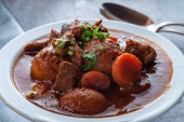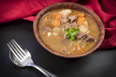 PotjieKos Południowej Afryki ogonowa gulasz z baby marchew złoto ziemniaki i pieczarki