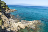 Zdjęcie "Jacht obok urwiska z jaskini w krystalicznie czystych wodach Morza Śródziemnego w Palamos Costa Brava, Girona, Katalonia, Hiszpania" może być wykorzystywane do celów osobistych i komercyjnych zgodnie z warunkami zakupionej licencji Royalty-free. Obraz jest dostępny do pobrania w jakości wysokiej rozdzielczości do 5760x3840.