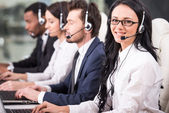 Wielokulturowym młodych zadowoleni pracownicy call Center