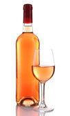Butelka szklana Róża alkoholu na białym tle na białym tle