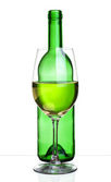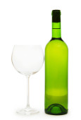 Butelka wina szkło biały zielony alkohol na białym tle na białym tle