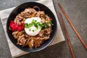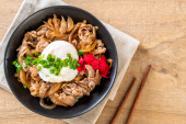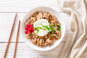miska ryżu wieprzowego z jajkiem (Donburi) - japoński styl jedzenia