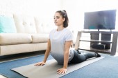 Młoda kobieta hiszpanin medytacji w lotus jogi w salonie