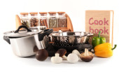 kompozycja kuchnia narzędzia i warzywa na stole w kuchni