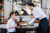 Młoda para Dokonywanie zdjęcia selfie w restauracji.