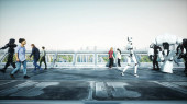 inwazji wojskowych robotów. Koncepcja super realistyczny dramatyczne Apokalipsy. Przyszłość. renderowania 3D.