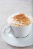 Kawa cappuccino na podłoże drewniane podłogi z bliska