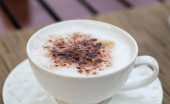 Kawa cappuccino na podłoże drewniane podłogi