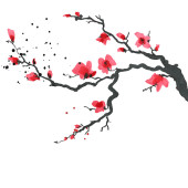 Góry w japońskim stylu. Dłoń akwarela malarstwo ilustracja